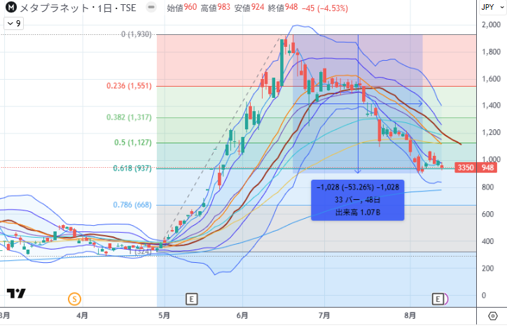 本日、8月14日現在のメタプラネットの日足チャートです↓