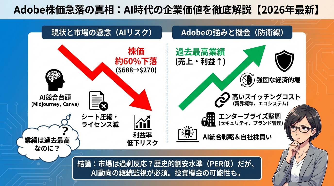 Adobe株価急落の真相:AI時代における企業価値を徹底解説【2026年最新】