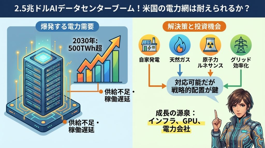 米国の電力網は2.5兆ドルのAIデータセンターブームに耐えられるのか?電力需要と供給の最新動向