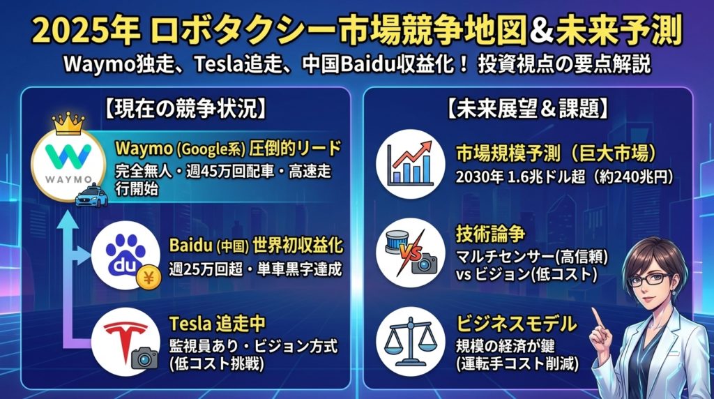 2025年ロボタクシー市場の最新動向|Waymo・Tesla・中国勢の競争状況を徹底解説