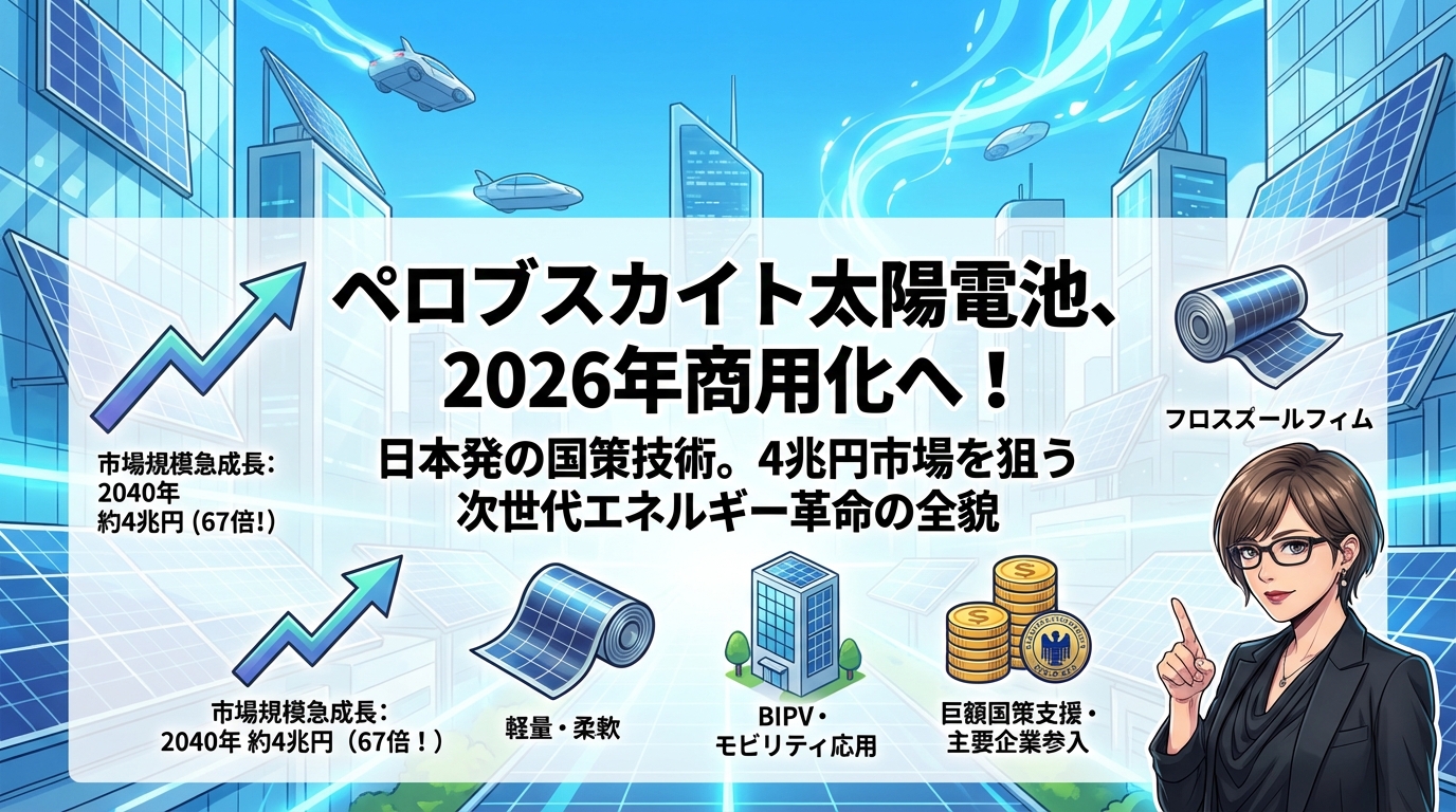 2026年は「ペロブスカイト太陽電池商用化元年」として、日本の再生可能エネルギー産業史に刻まれる年となるでしょう。積水化学工業の3月の商用化開始は、長年の研究開発が結実する歴史的瞬間です。この技術が、かつて世界をリードした日本の太陽電池産業を再び輝かせることができるのか。2026年からの数年間が、その答えを示すことになります。
