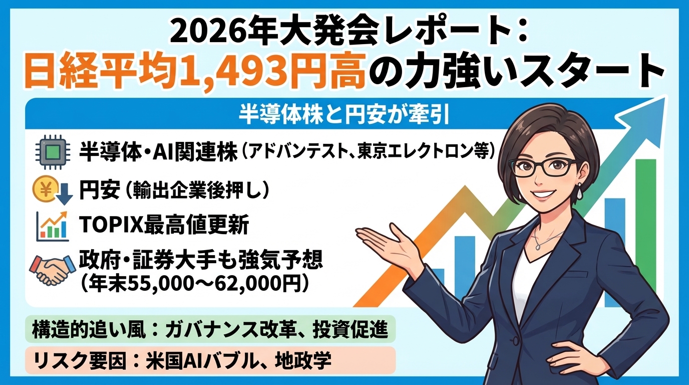 この記事では、2026年の大発会で起きた市場の動き、専門家たちの見通し、そして今後の日本株市場の展望について、わかりやすく解説していきます。株式市場に関心のある方はもちろん、これから投資を始めようと考えている方にも、今の市場環境を理解していただける内容になっています。